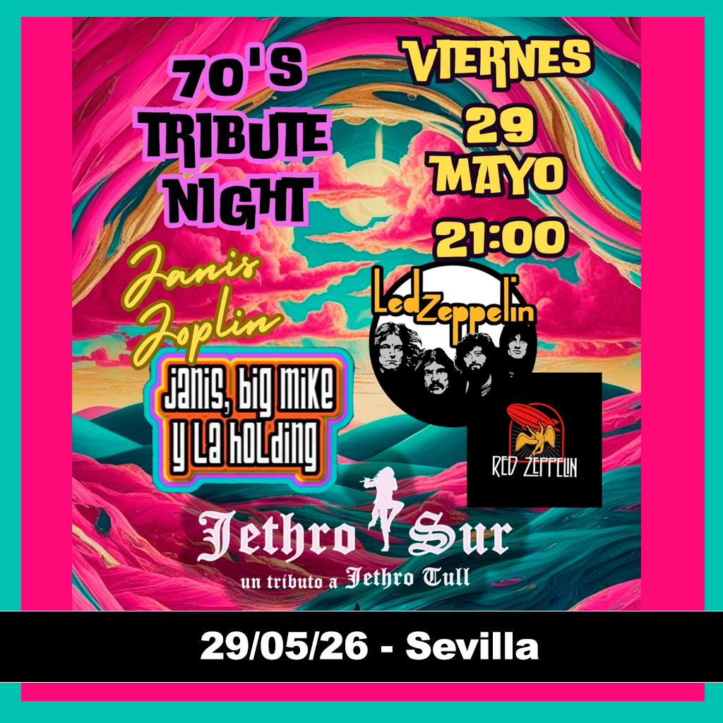 70´S TRIBUTE NIGHT 19,50 € 300 in stock 70´S TRIBUTE NIGHT cantidad Añadir al carrito Categoría: Entrada Concierto Descripción Descripción Sevilla Sala Custom C/ Metalurgia 25 (polígono Calonge) Viernes 29 de Mayo de 2026 20:30 h: Apertura de puertas 21:30 h: Show Precio: 18 € + gastos (19,50 € precio final). Productos relacionados GUN Entrada + LP 51,52 € Añadir al carrito Promoción Jovenes Rockeros (Menores de 16 años). 2,00 € Añadir al carrito GUN Entrada VIP + LP 86,40 € Añadir al carrito GUN Entrada VIP + CD 75,60 € Añadir al carrito